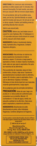 El bicarbonato de sodio de Arm & Hammer es el secreto original de limpieza y frescura, y lo ha sido durante generaciones. Hoy, Arm & Hammer y OxiClean Dirt Fighters utilizan el poder del bicarbonato de sodio para neutralizar incluso los olores más persistentes en las alfombras. Además, el potenciador de aspiradora afloja la suciedad y ayuda a que la aspiradora levante un 25 % más de suciedad y pelo de mascotas que aspirando solo.