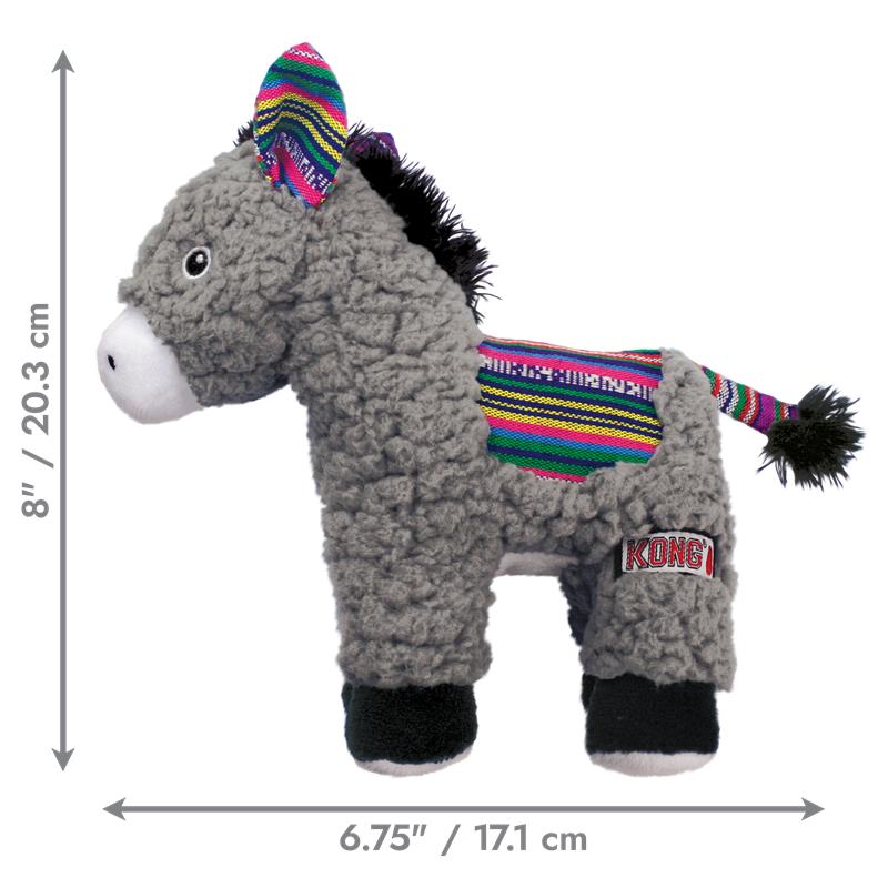 El juguete para perro KONG Sherps Burro está lleno de un material de felpa irresistiblemente suave para las caricias esenciales en cada expedición de juego, estos compañeros de aventura chirriantes y arrugados de doble capa son ideales para la acción en interiores, desde las cimas de los sofás hasta los paseos por la casa. Un chirriador adicional motiva y extiende la diversión.